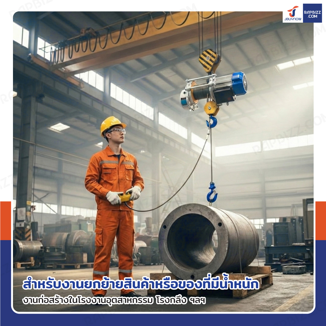 - สำหรับงานยกย้ายสินค้าหรือสิ่งของที่มีน้ำหนักจำนวนมาก งานก่อสร้างในโรงงานอุตสาหกรรม โรงกลึง ฯลฯ