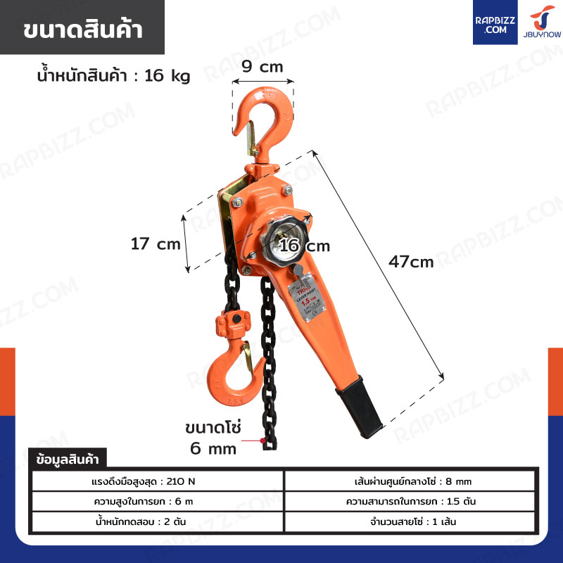 TRHB รอกโซ่มือโยก รอกกำมะลอ 1.5 ตัน โซ่ยาว 6 เมตร