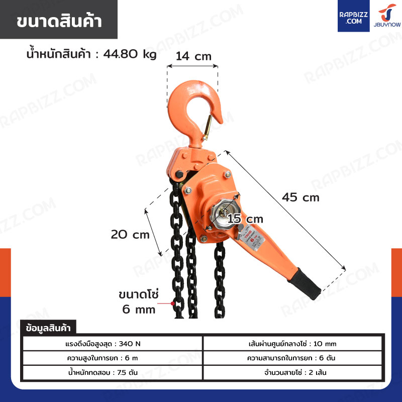 TRHB รอกโซ่มือโยก รอกกำมะลอ 6 ตัน โซ่ยาว 6 เมตร