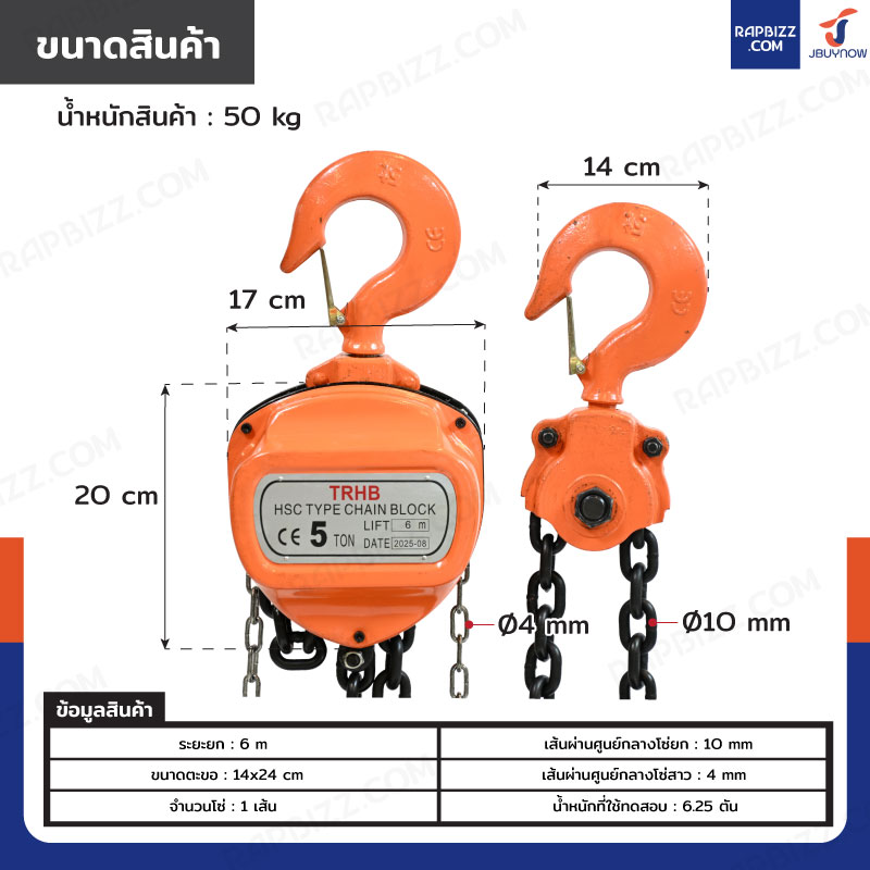 - เส้นผ่านศูนย์กลางโซ่ยก: 10 mm