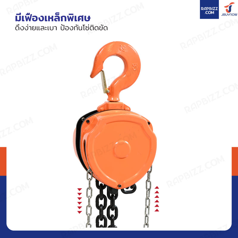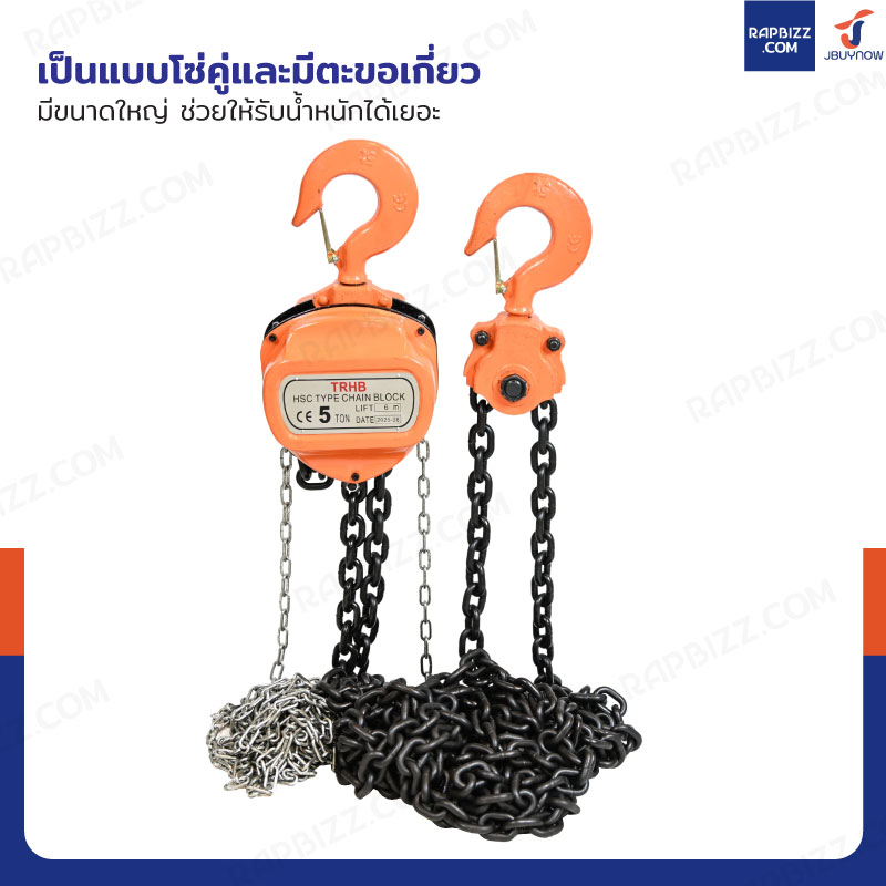 - เป็นแบบโซ่คู่และมีตะขอเกี่ยวมีขนาดใหญ่ ช่วยให้รับน้ำหนักได้เยอะ