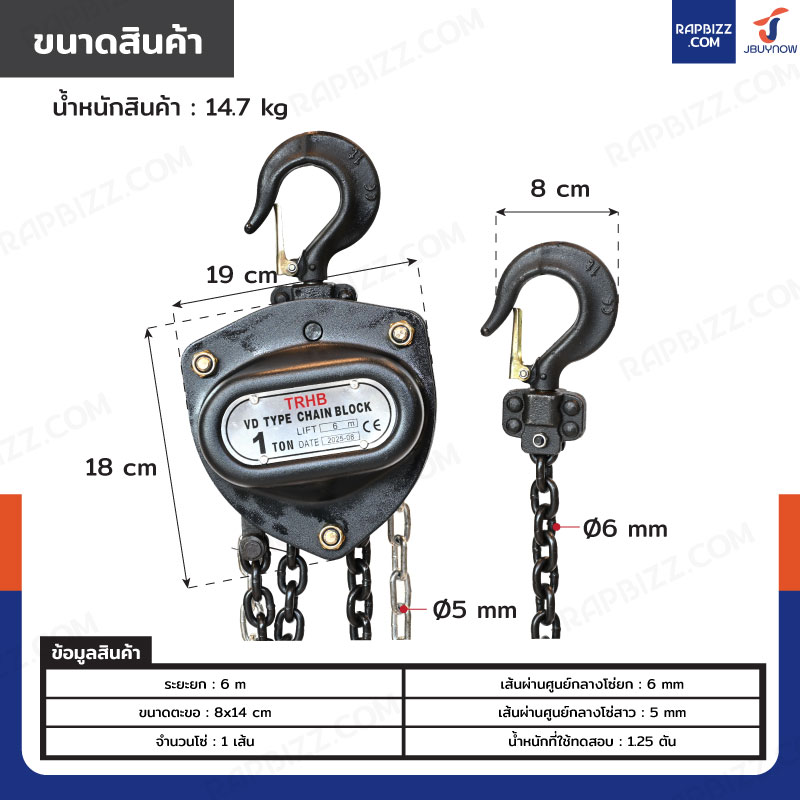 - เส้นผ่านศูนย์กลางโซ่ยก: 6 mm