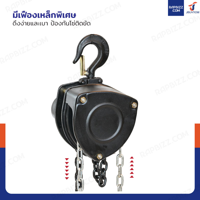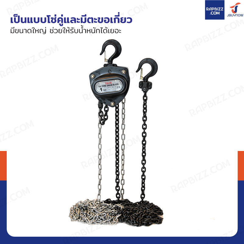 - เป็นแบบโซ่คู่และมีตะขอเกี่ยวมีขนาดใหญ่ ช่วยให้รับน้ำหนักได้เยอะ