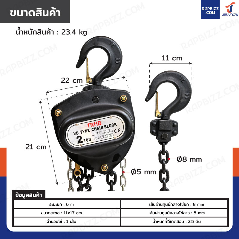 - เส้นผ่านศูนย์กลางโซ่ยก: 8 mm