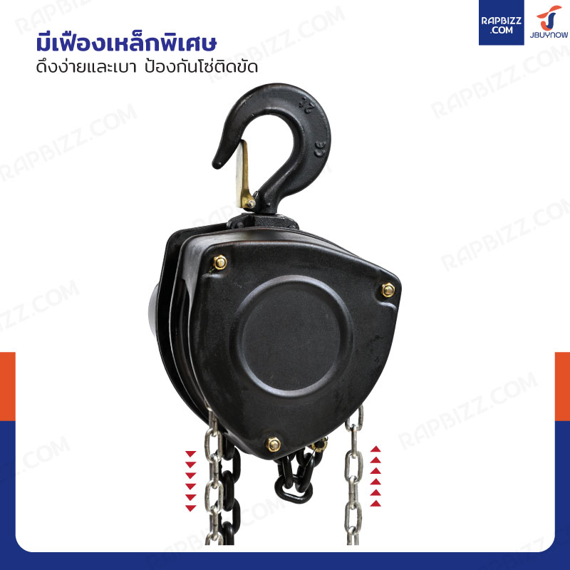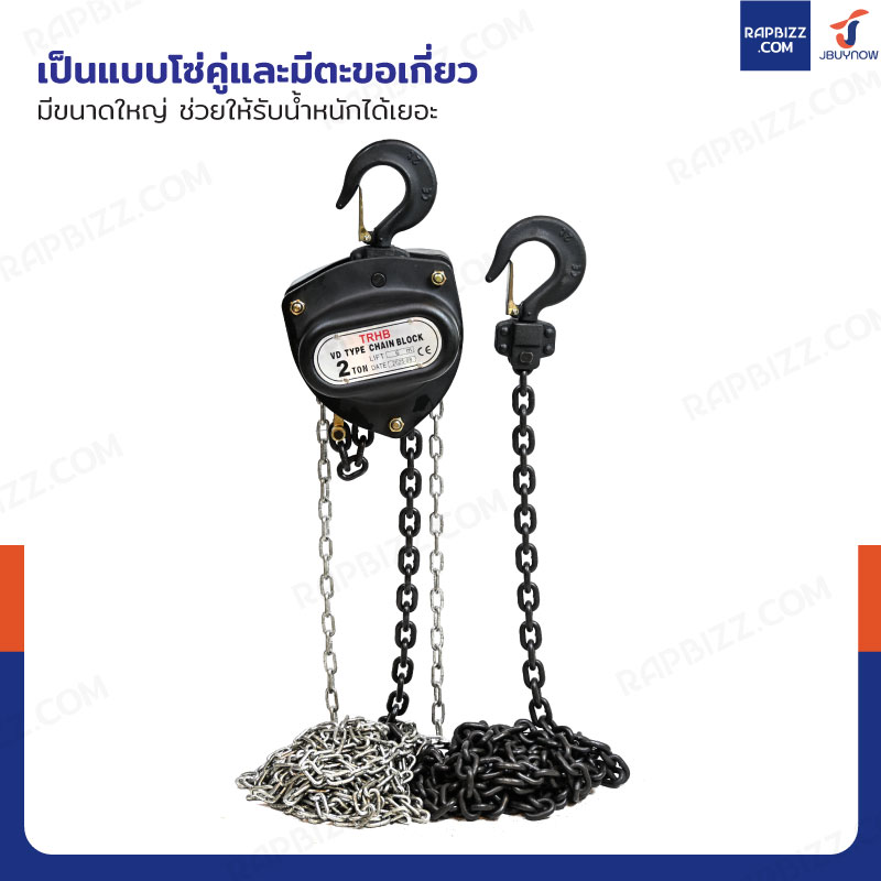 - เป็นแบบโซ่คู่และมีตะขอเกี่ยวมีขนาดใหญ่ ช่วยให้รับน้ำหนักได้เยอะ