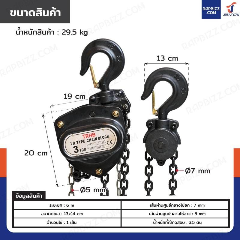 - เส้นผ่านศูนย์กลางโซ่ยก: 7 mm
