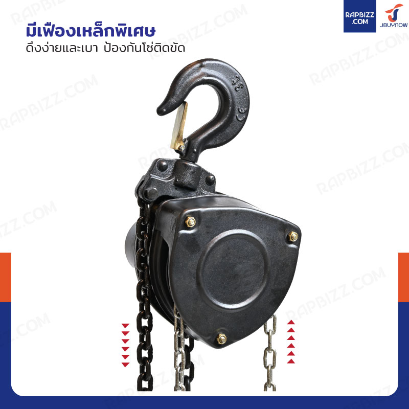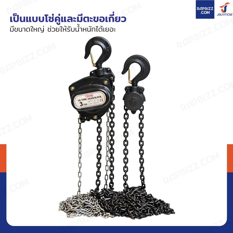 - เป็นแบบโซ่คู่และมีตะขอเกี่ยวมีขนาดใหญ่ ช่วยให้รับน้ำหนักได้เยอะ