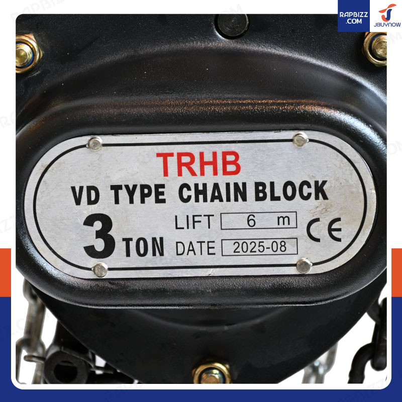TRHB รอกโซ่มือสาว รอกสามเหลี่ยม 3 ตัน โซ่ยาว 6 เมตร VD Type สีดำ