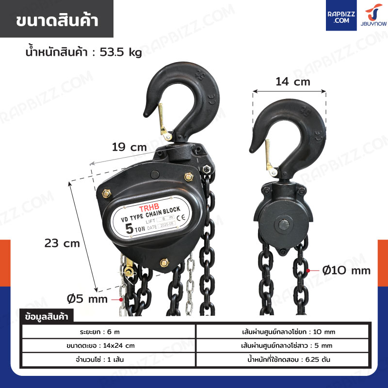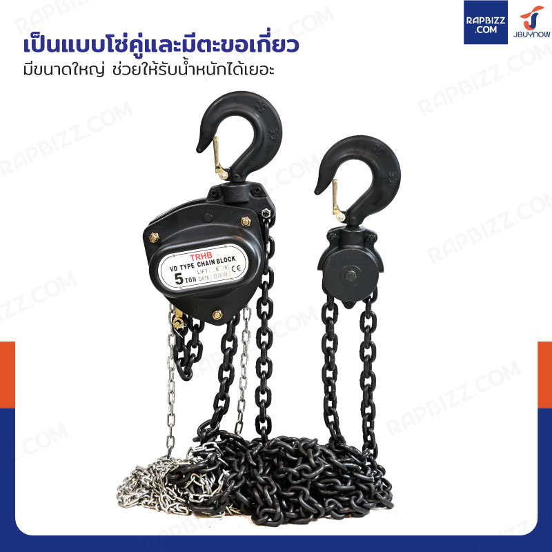 TRHB รอกโซ่มือสาว รอกสามเหลี่ยม 5 ตัน โซ่ยาว 6 เมตร VD Type สีดำ