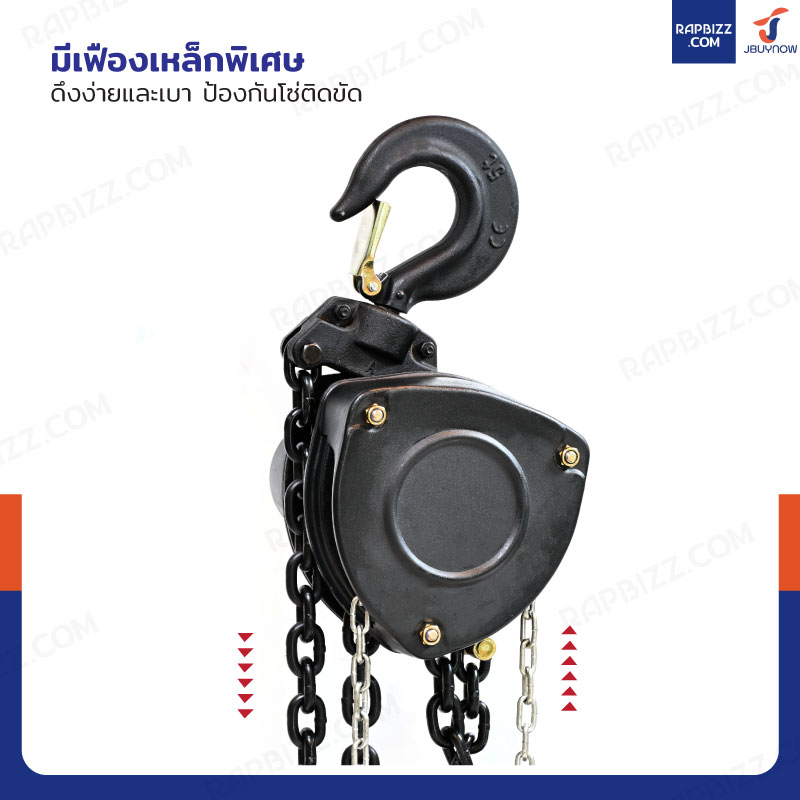 - เป็นแบบโซ่คู่และมีตะขอเกี่ยวมีขนาดใหญ่ ช่วยให้รับน้ำหนักได้เยอะ