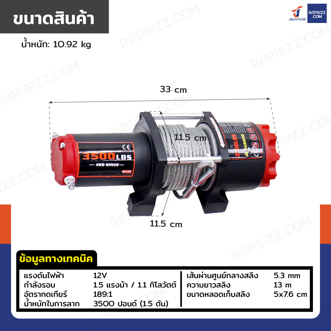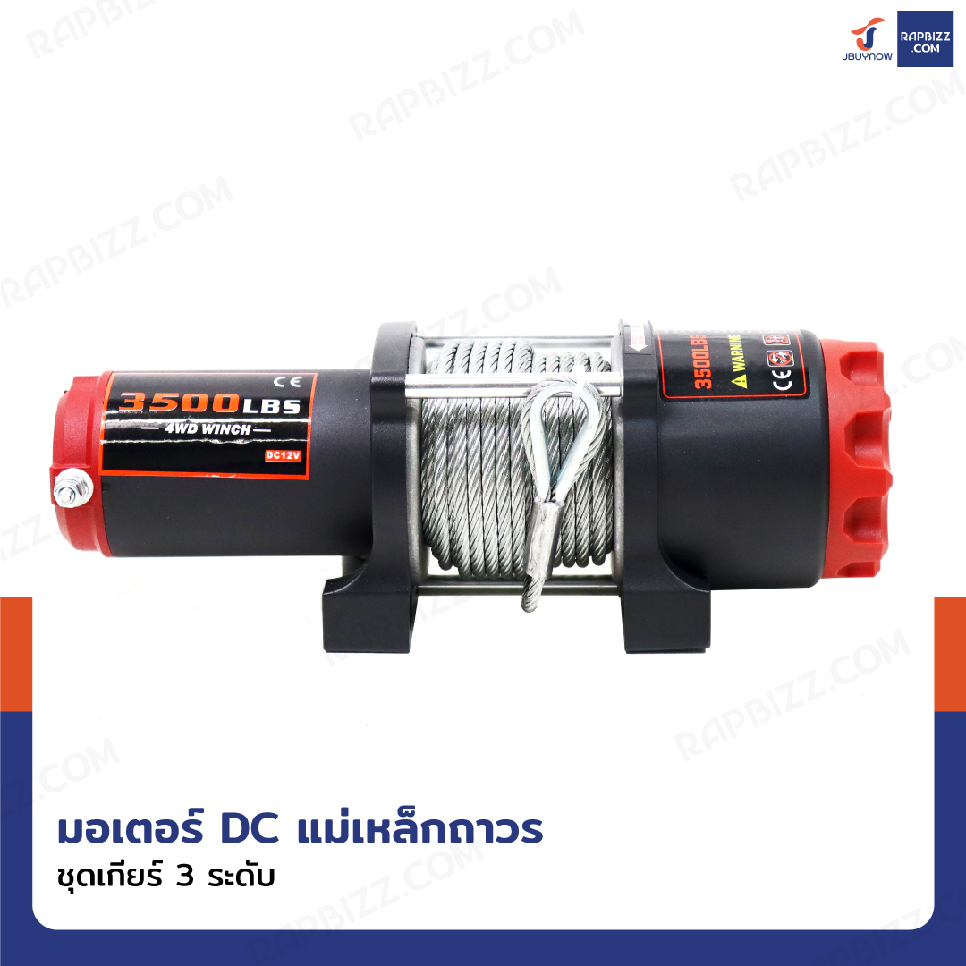 วินซ์ติดรถ 1.5 ตัน/3500 ปอนด์ มีเกียร์ มอเตอร์ 1.5hp/1.1Kw/12V สลิง 13M 3500-S