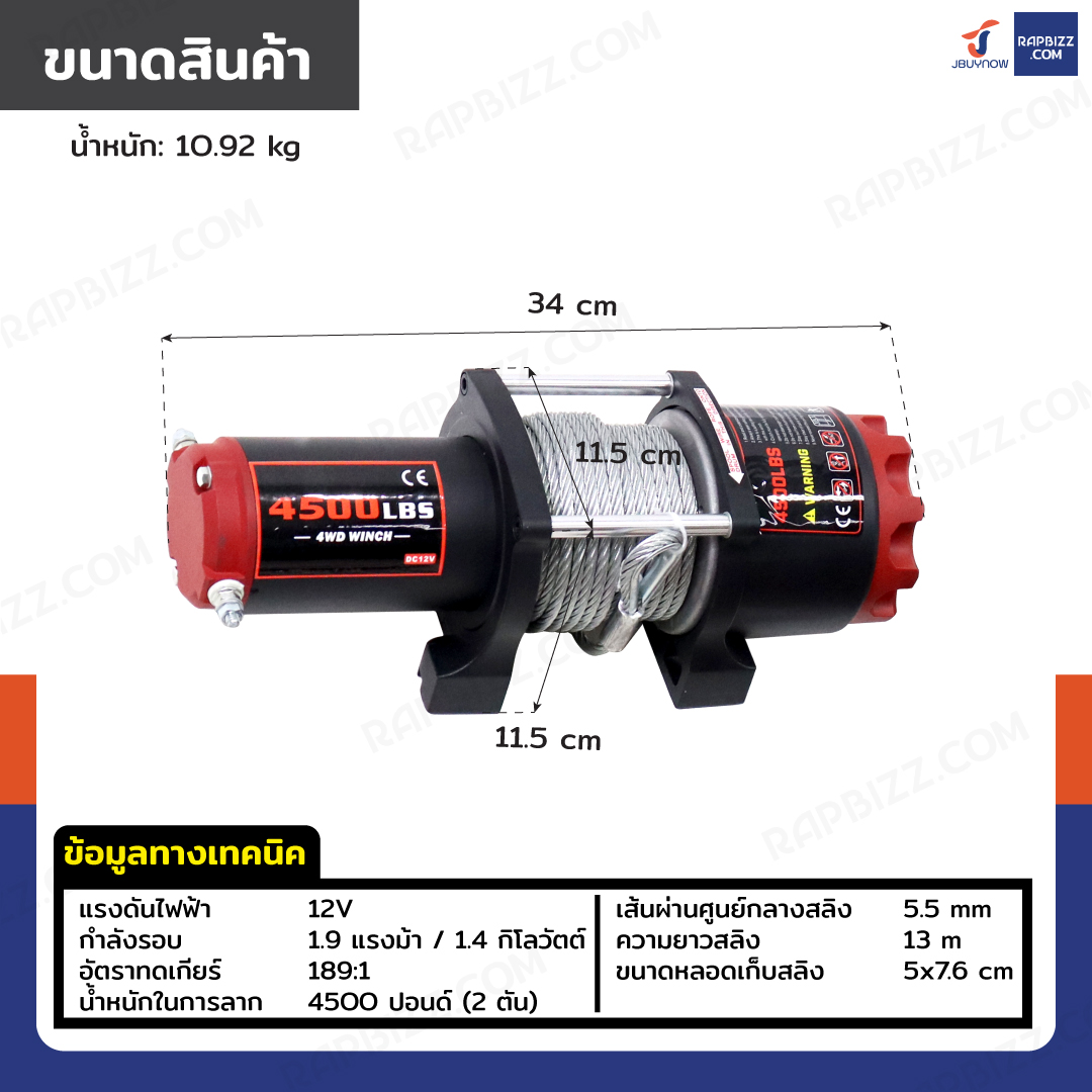 วินซ์ติดรถ 2 ตัน/4500 ปอนด์ มีเกียร์ มอเตอร์ 1.9hp/1.4Kw/12V สลิง 13M 4500-S