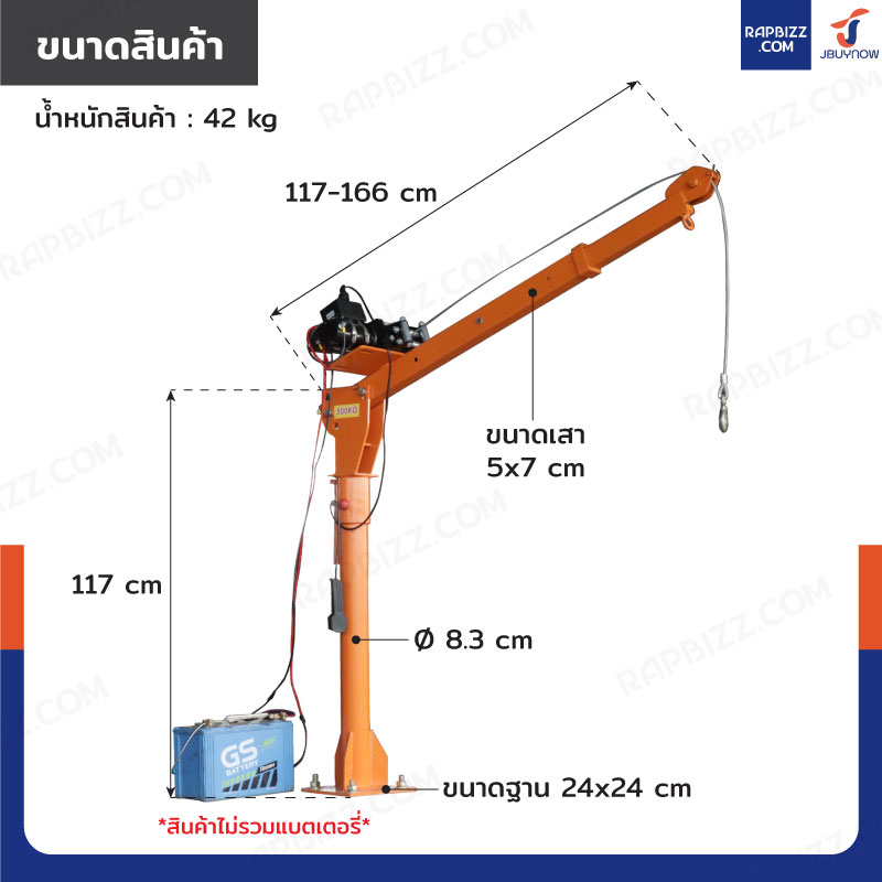 - แขนเครนยืด-หดได้: 117-166 cm