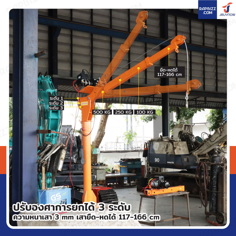 มินิเครน 500 kg สำหรับติดท้ายรถ พร้อมวินซ์ 4500lb/2 ตัน