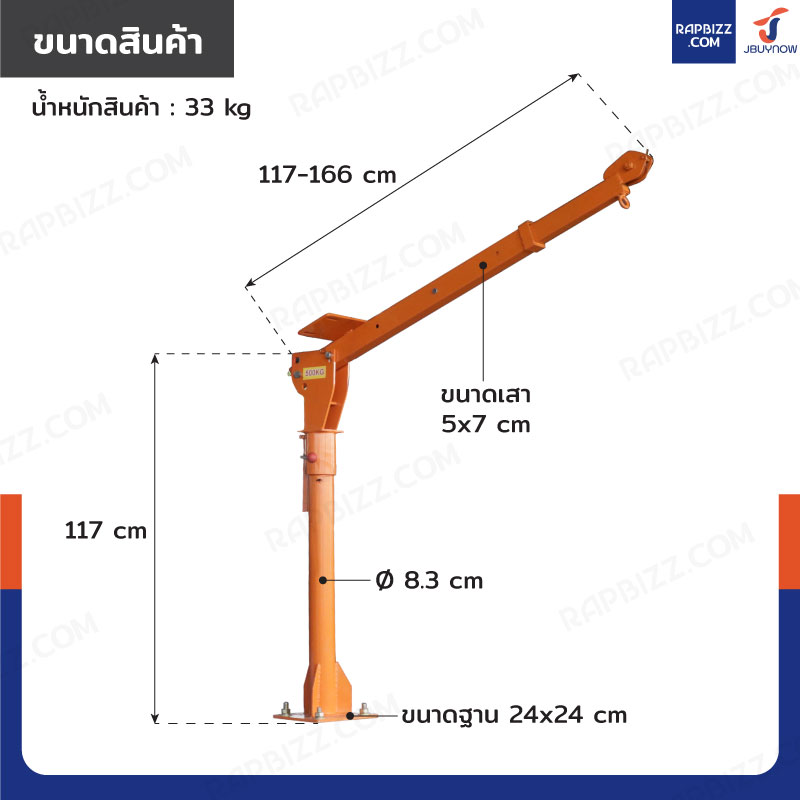 - แขนเครนยืด-หดได้: 117-166 cm