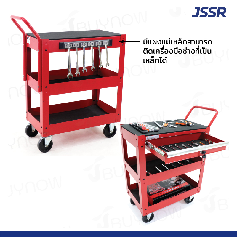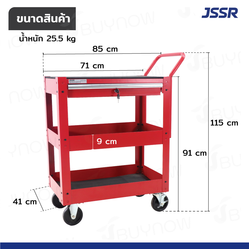 รถเข็นเครื่องมือมีลิ้นชักพร้อมกุญแจล็อค 71x41x91 cm สีแดง PMT-114RD