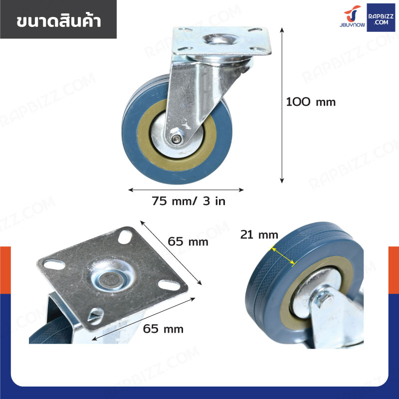 ล้อ 3 แป้นเป็น Rubber PVC wheel สีฟ้า JBUYNOW JF-1003075