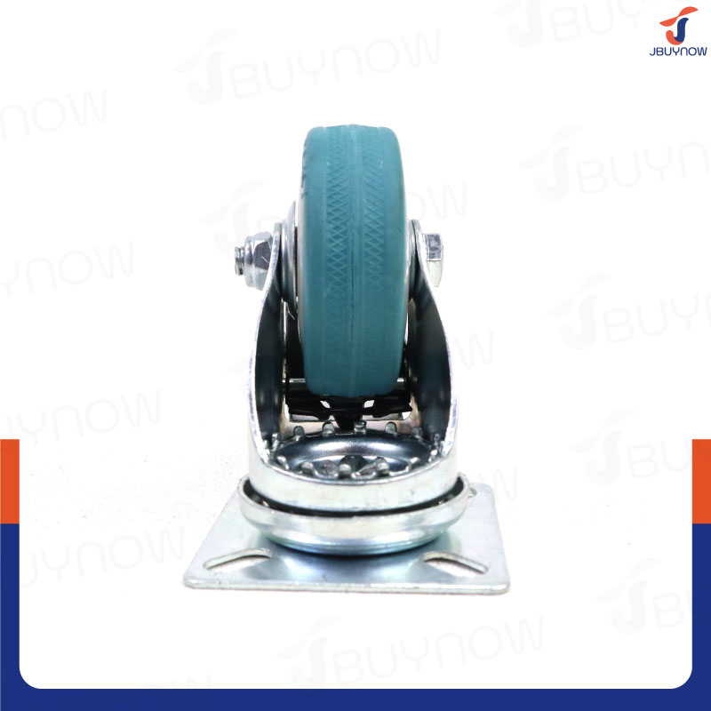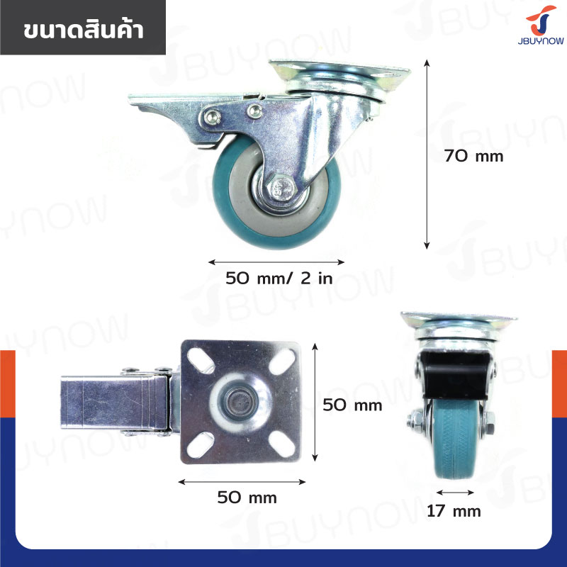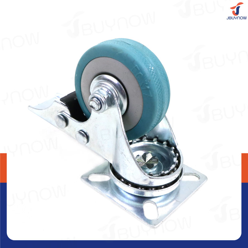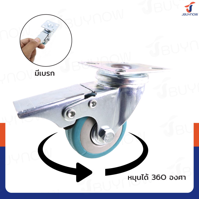 ล้อ 2 แป้นเป็น มีเบรก Rubber PVC wheel สีฟ้า JBUYNOW JF-1006050