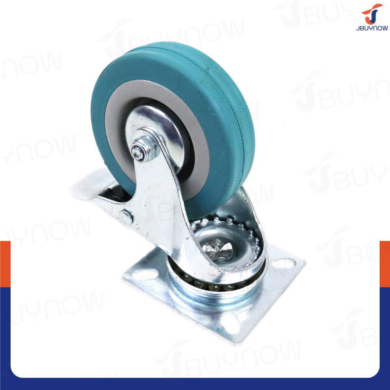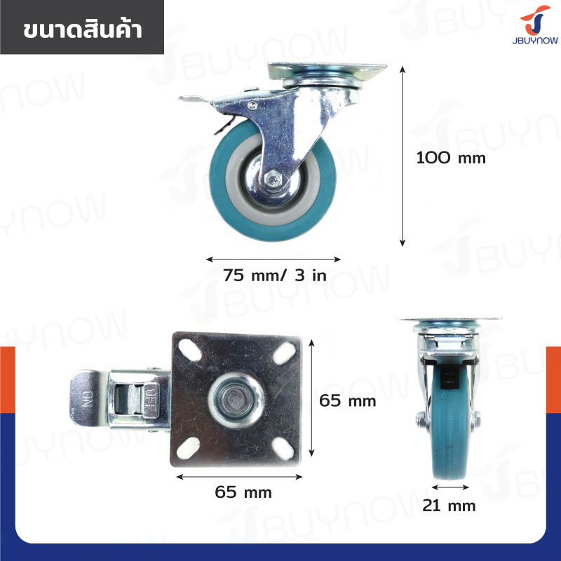 ล้อ 3 แป้นเป็น มีเบรก Rubber PVC wheel สีฟ้า JBUYNOW JF-1008075