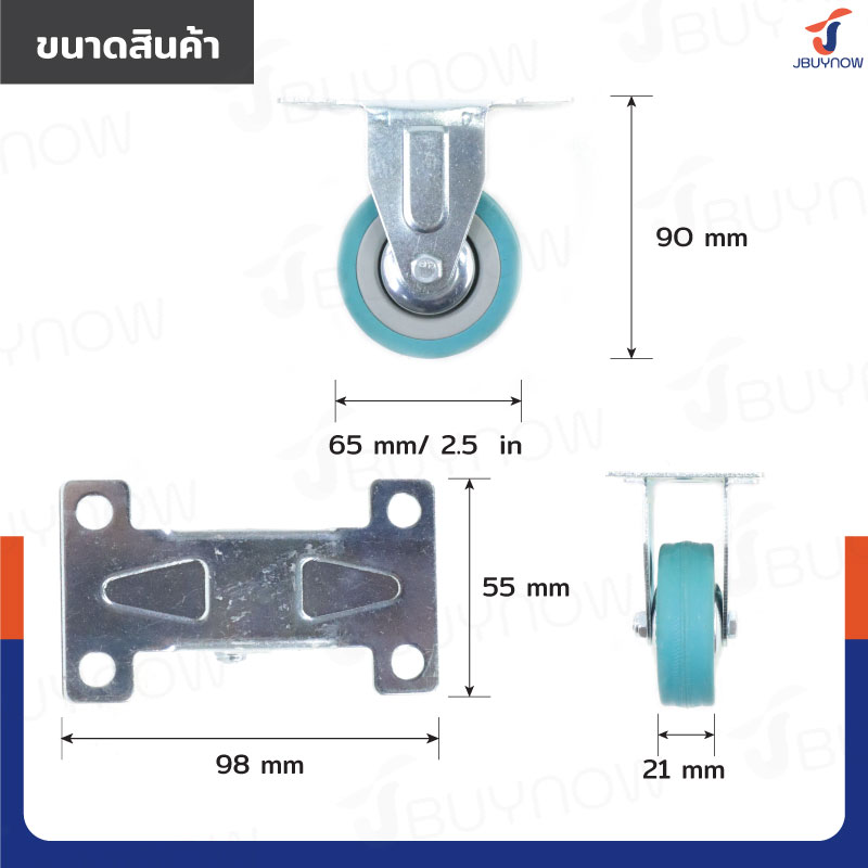 ล้อ 2.5 แป้นตาย Rubber PVC wheel สีฟ้า JBUYNOW JF-1001265