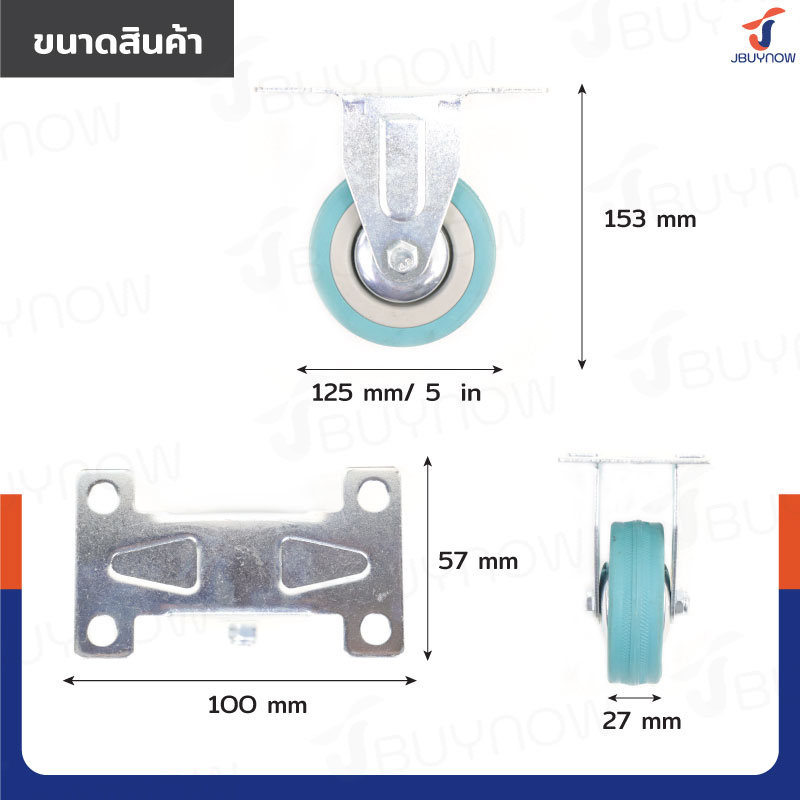 ล้อ 5 แป้นตาย Rubber PVC wheel สีฟ้า JBUYNOW JF-1015125