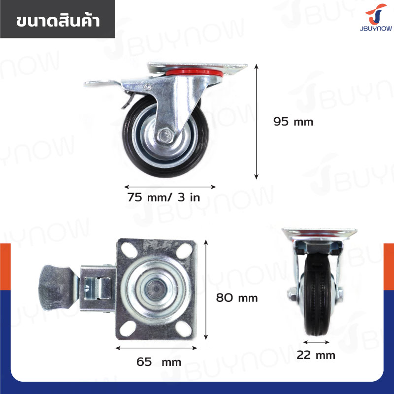 ล้อยางดำ 3 แป้นเป็น มีเบรก JBUYNOW JF-1038075