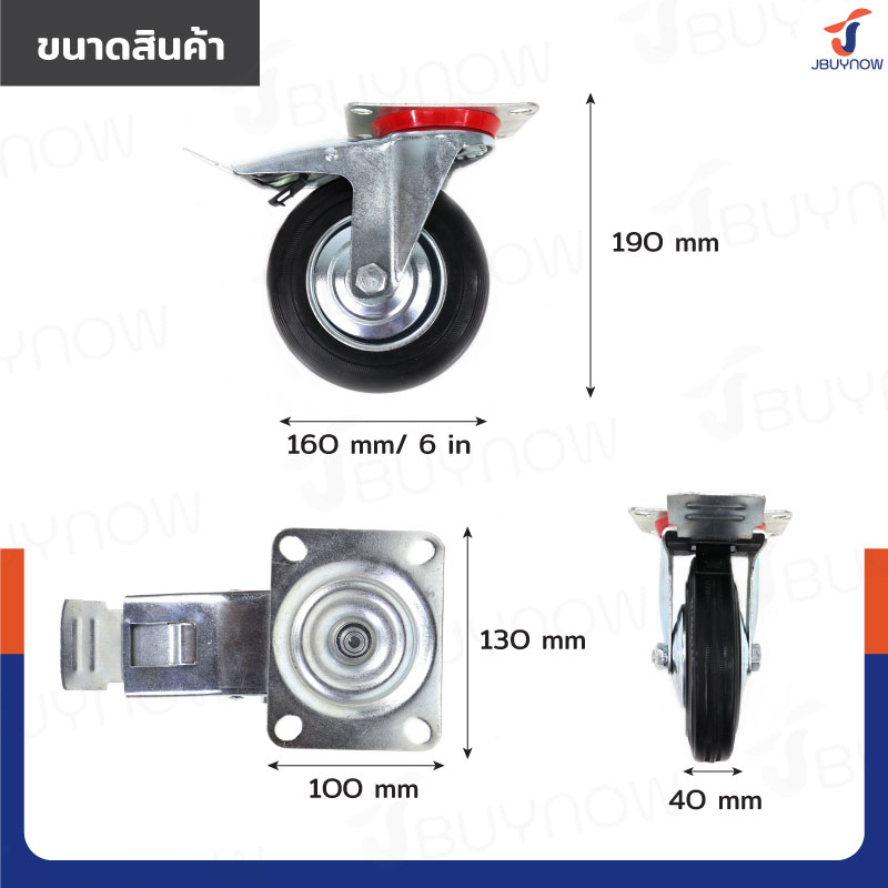 ล้อยางดำ 6 แป้นเป็น มีเบรก JBUYNOW JF-1042160