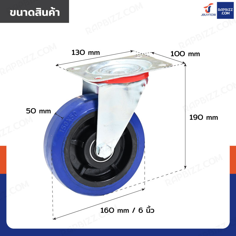 ล้อ 6 แป้นเป็น Rubber+PP สีน้ำเงิน JBUYNOW JF-1070160
