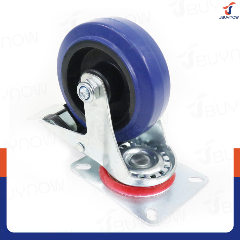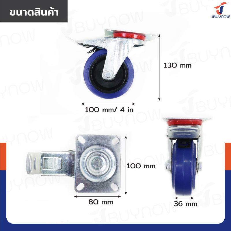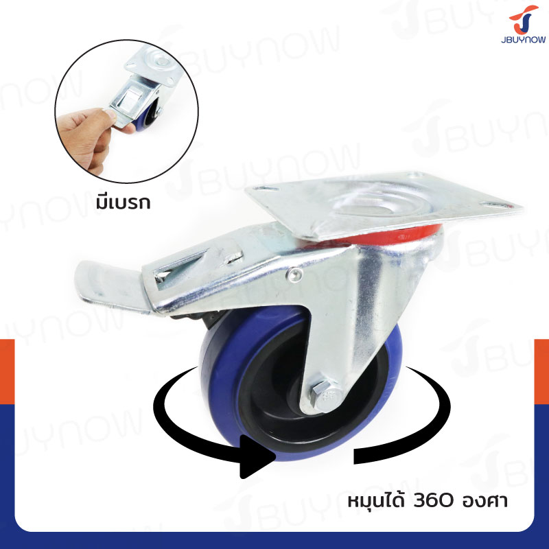 ล้อ 4 แป้นเป็น มีเบรก Rubber+PP สีน้ำเงิน JBUYNOW JF-1074100