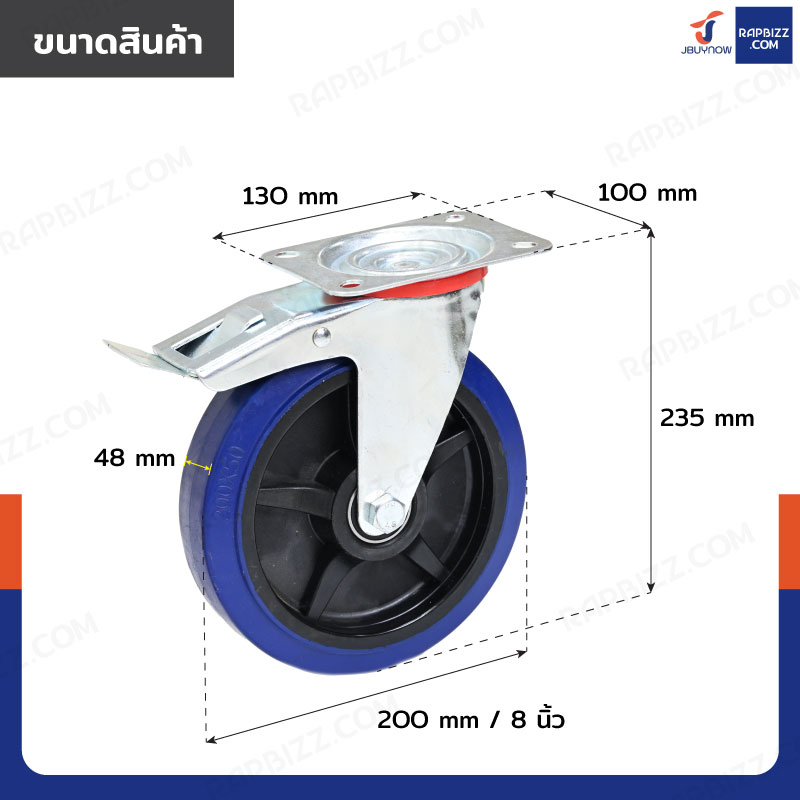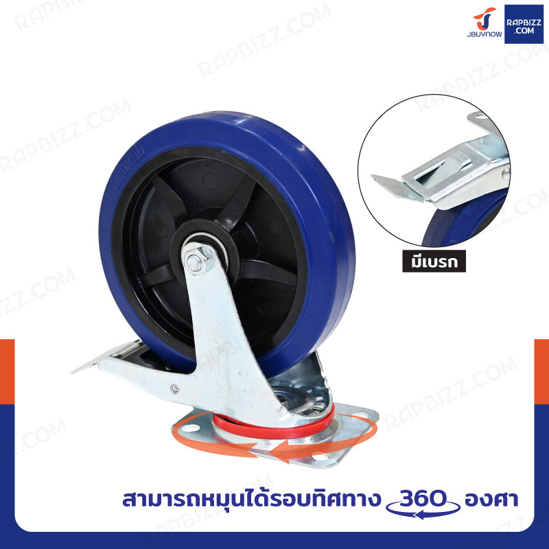ล้อ 8 แป้นเป็น มีเบรก Rubber+PP สีน้ำเงิน JBUYNOW JF-1077200