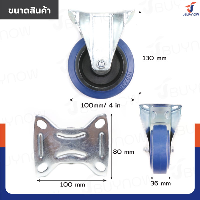 ล้อ 4 แป้นตาย Rubber+PP สีน้ำเงิน JBUYNOW JF-1080100