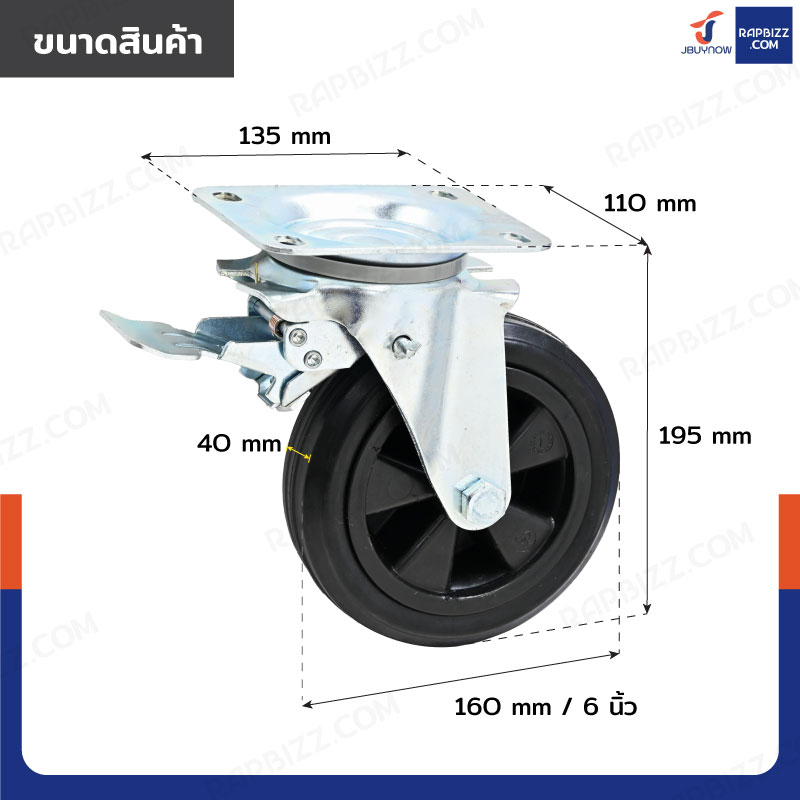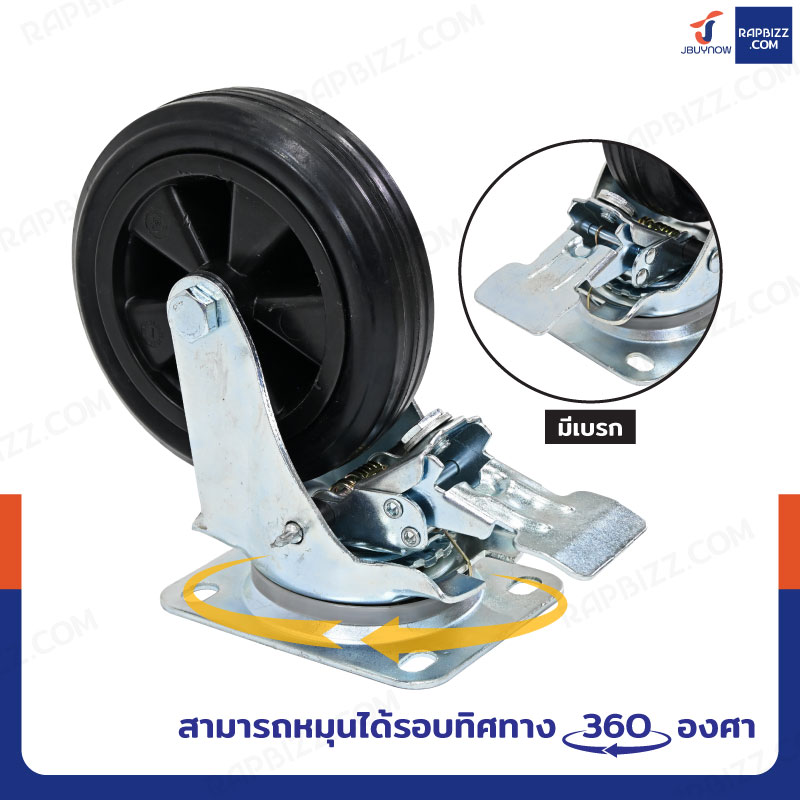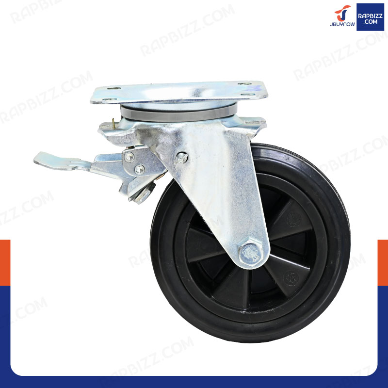 ล้อรถเข็น 6 นิ้ว กระทะพลาสติก แป้นเป็น มีเบรก JBUYNOW JF-1115160
