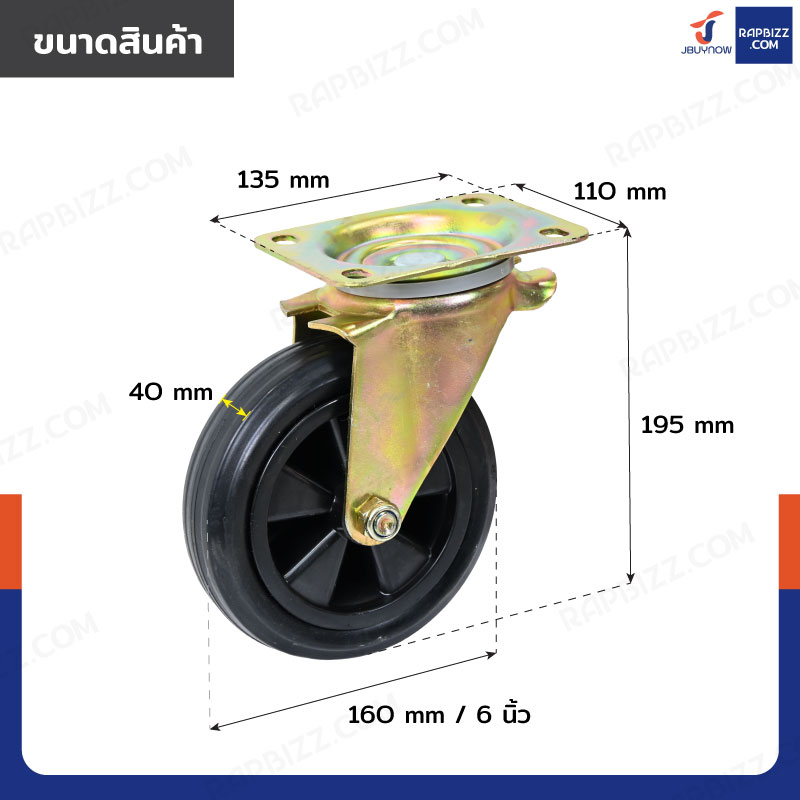 ล้อรถเข็น 6 นิ้ว กระทะ พลาสติก แป้นเป็น กัลวาไนซ์ JBUYNOW JF-1117160