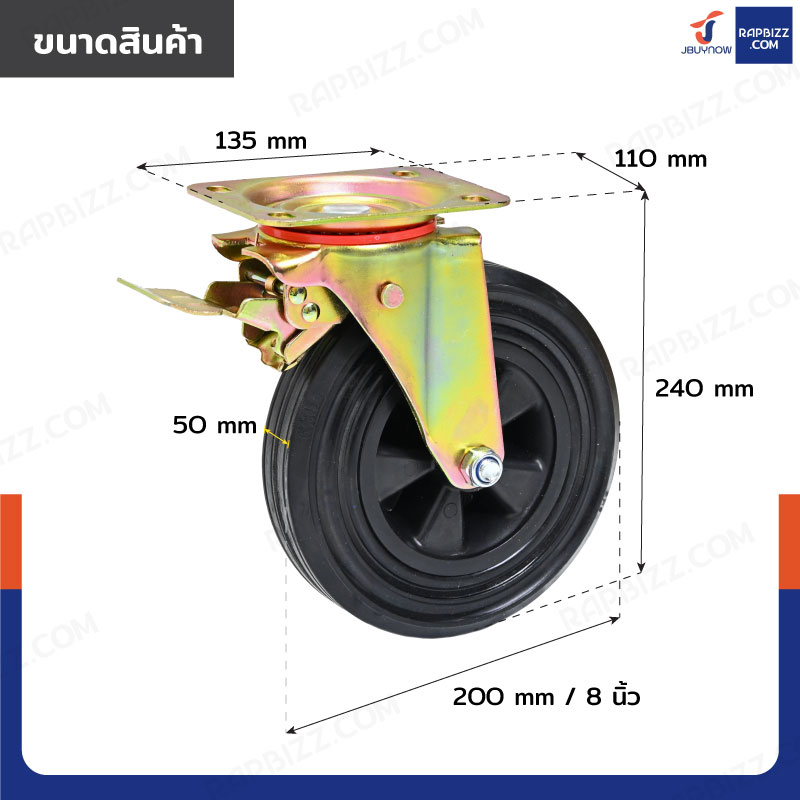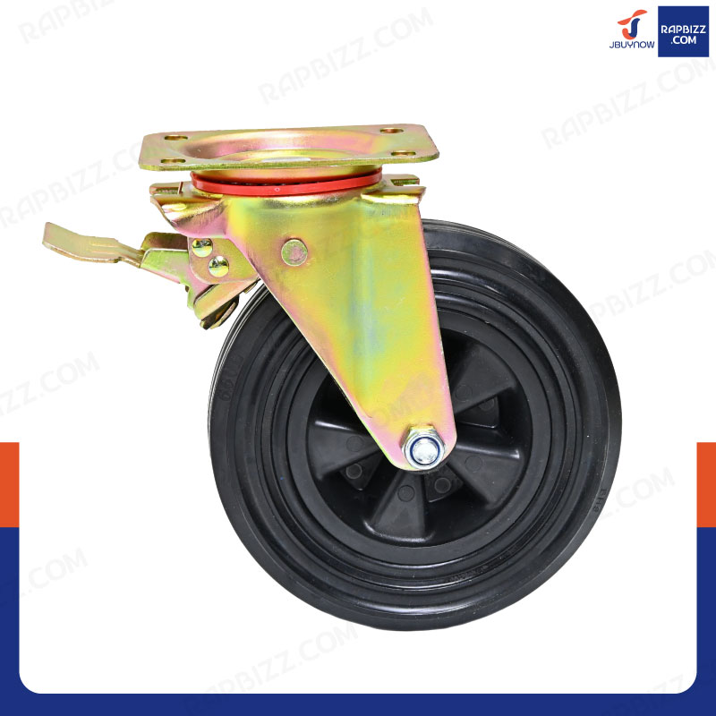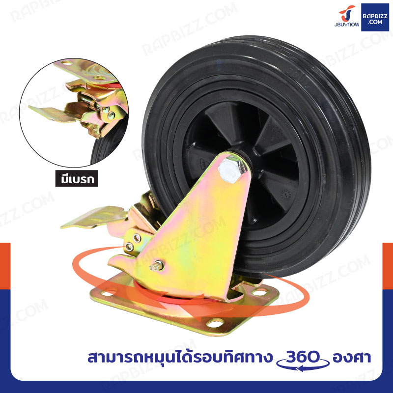 ล้อรถเข็น 8 กระทะเหล็ก แป้นเป็น กัลวาไนซ์ มีเบรก JBUYNOW JF-1120200