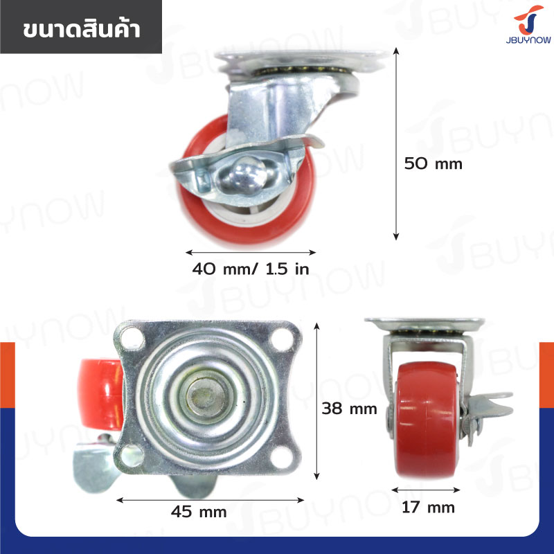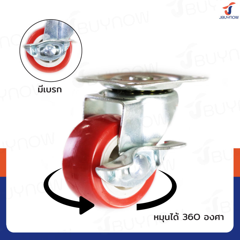 ล้อ 1.5 แป้นเป็น PP+PVC มีเบรก สีแดง JBUYNOW JF-1302040