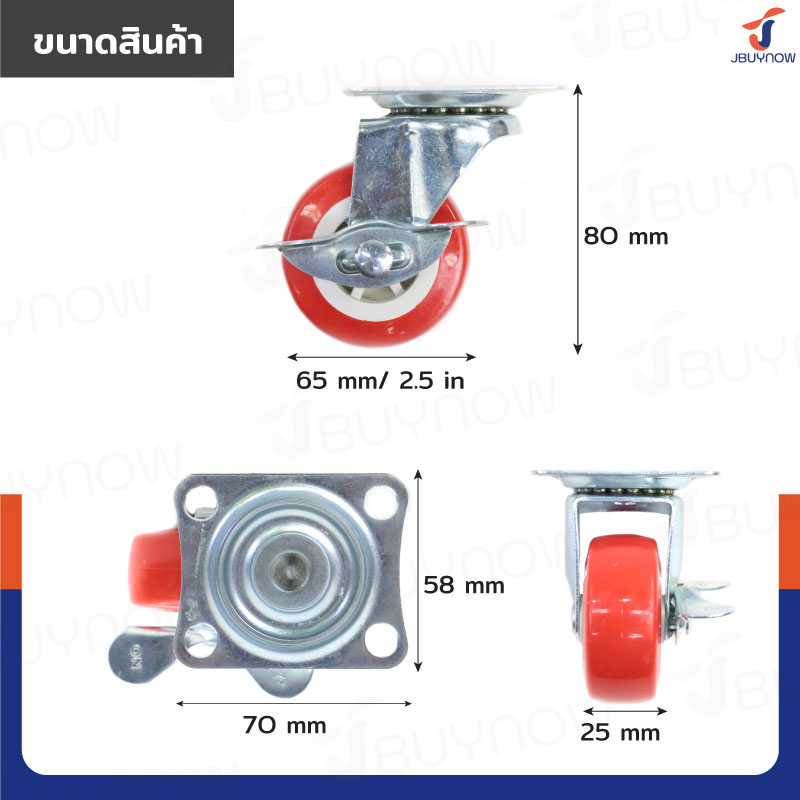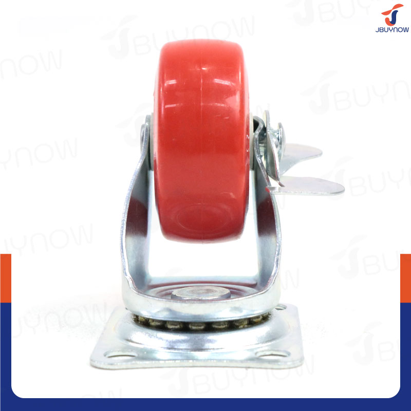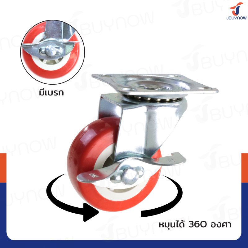 ล้อ 2.5 แป้นเป็น PP+PVC มีเบรก สีแดง JBUYNOW JF-1304065