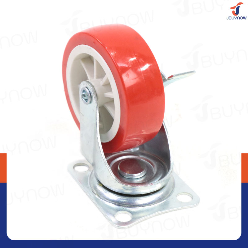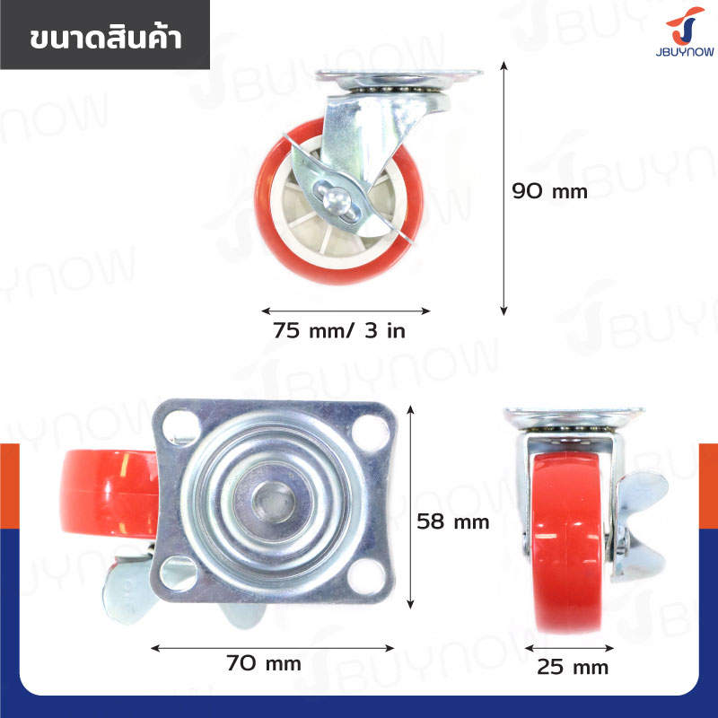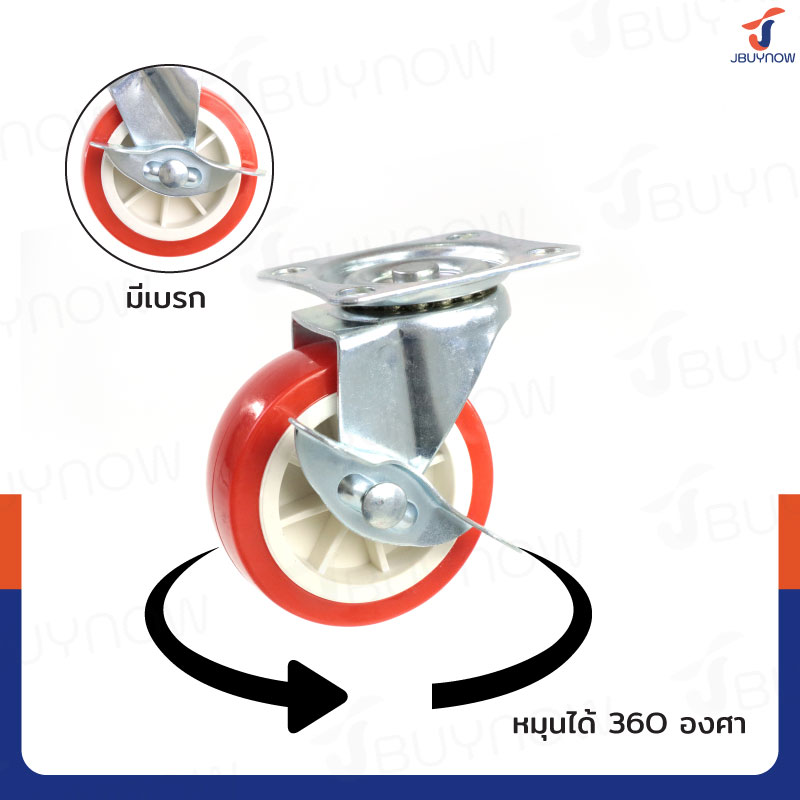 ล้อ 3 แป้นเป็น PP+PVC มีเบรก สีแดง JBUYNOW JF-1305075