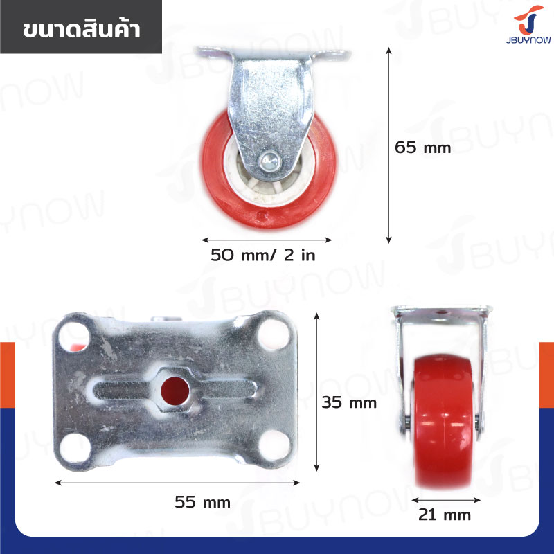 ล้อ 2 แป้นตาย PP+PVC สีแดง JBUYNOW JF-1307050