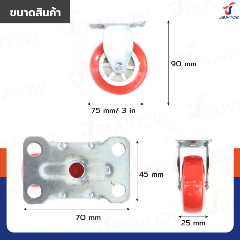 ล้อ 3 แป้นตาย PP+PVC สีแดง JBUYNOW JF-1309075