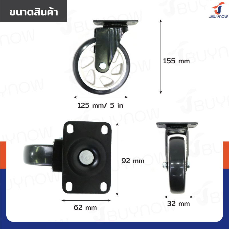 ล้อ 5 แป้นเป็น PVC/PU สีดำ JBUYNOW JF-1339125