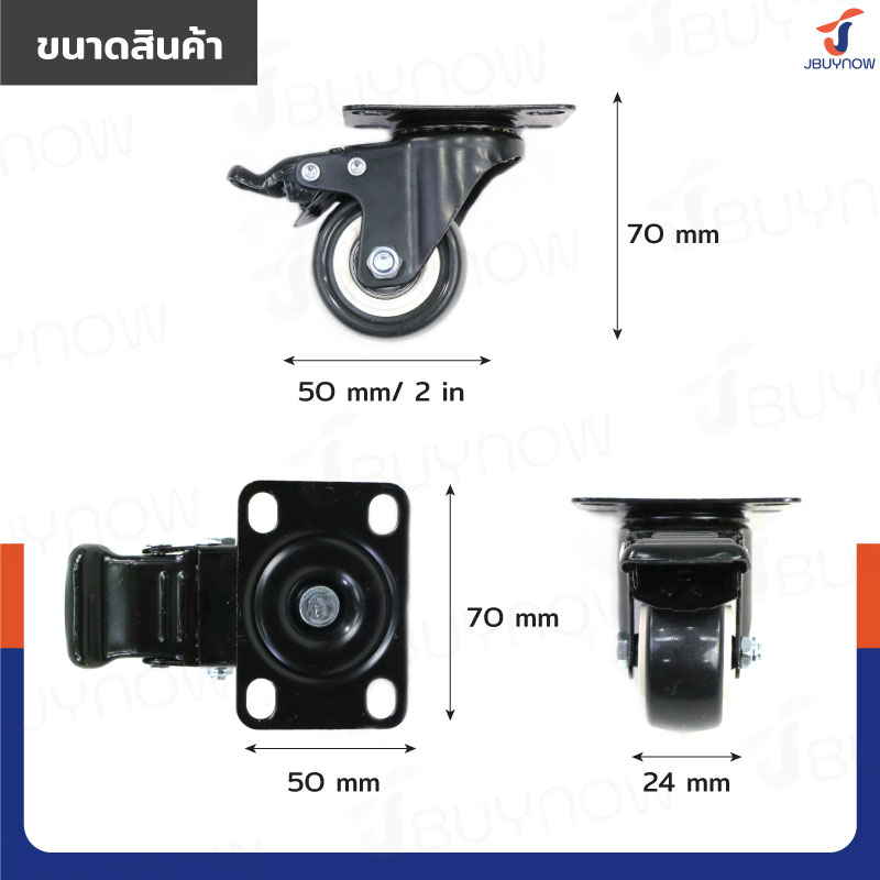 ล้อ 2 แป้นเป็น มีเบรก PVC/PU สีดำ JBUYNOW JF-1341050