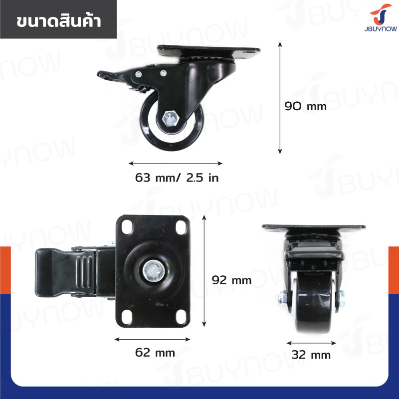 ล้อ 2.5 แป้นเป็น มีเบรก PVC/PU สีดำ JBUYNOW JF-1342063