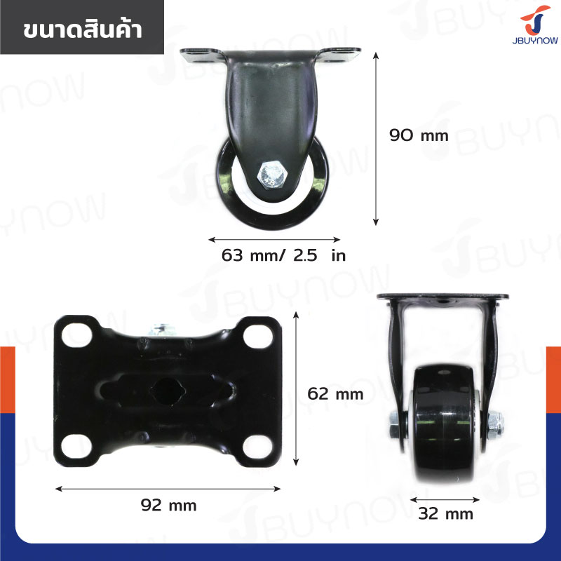 ล้อ 2.5 แป้นตาย PVC/PU สีดำ JBUYNOW JF-1348063