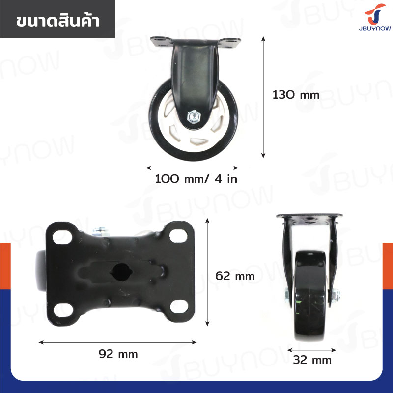 ล้อ 4 แป้นตาย PVC/PU สีดำ JBUYNOW JF-1350100