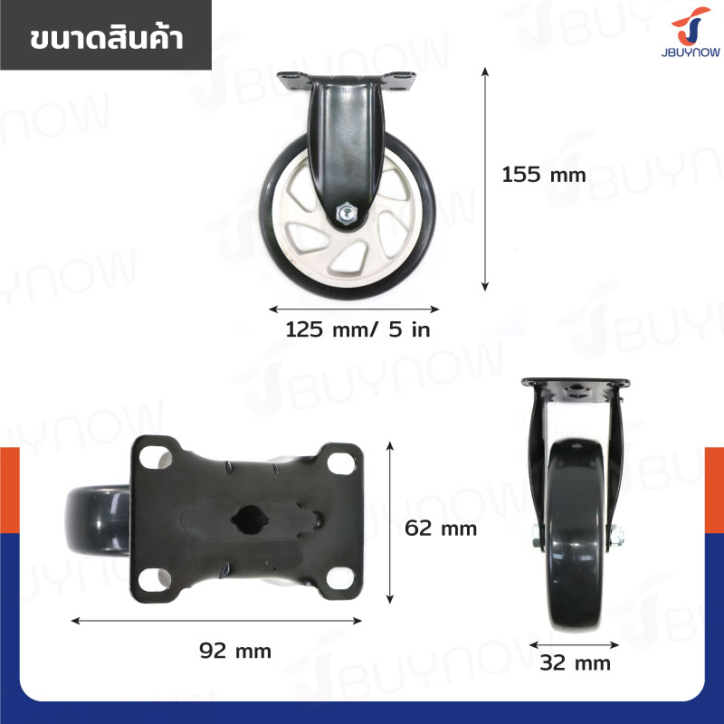 ล้อ 5 แป้นตาย PVC/PU สีดำ JBUYNOW JF-1351125