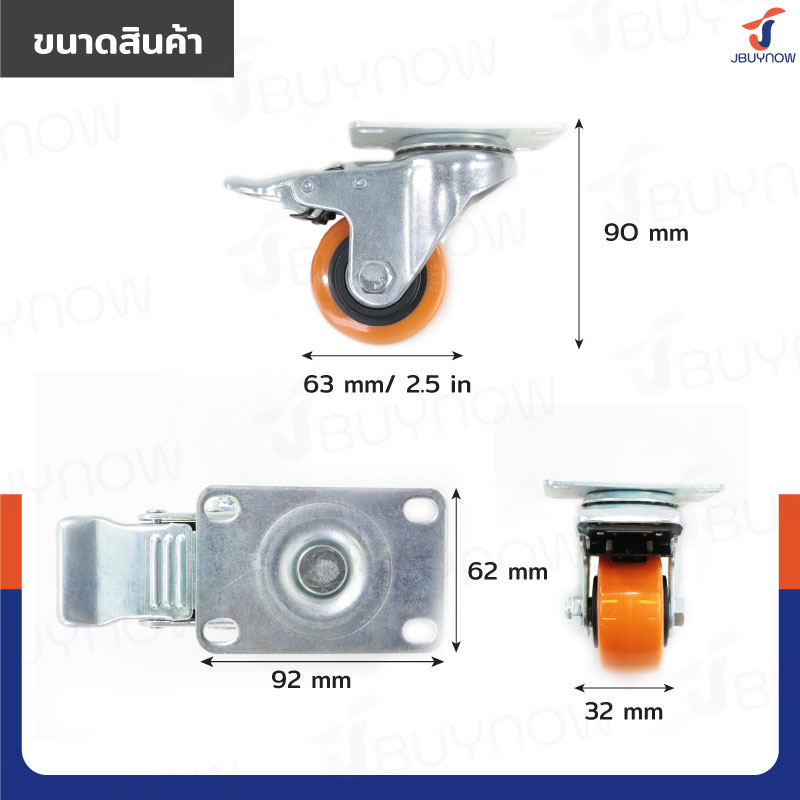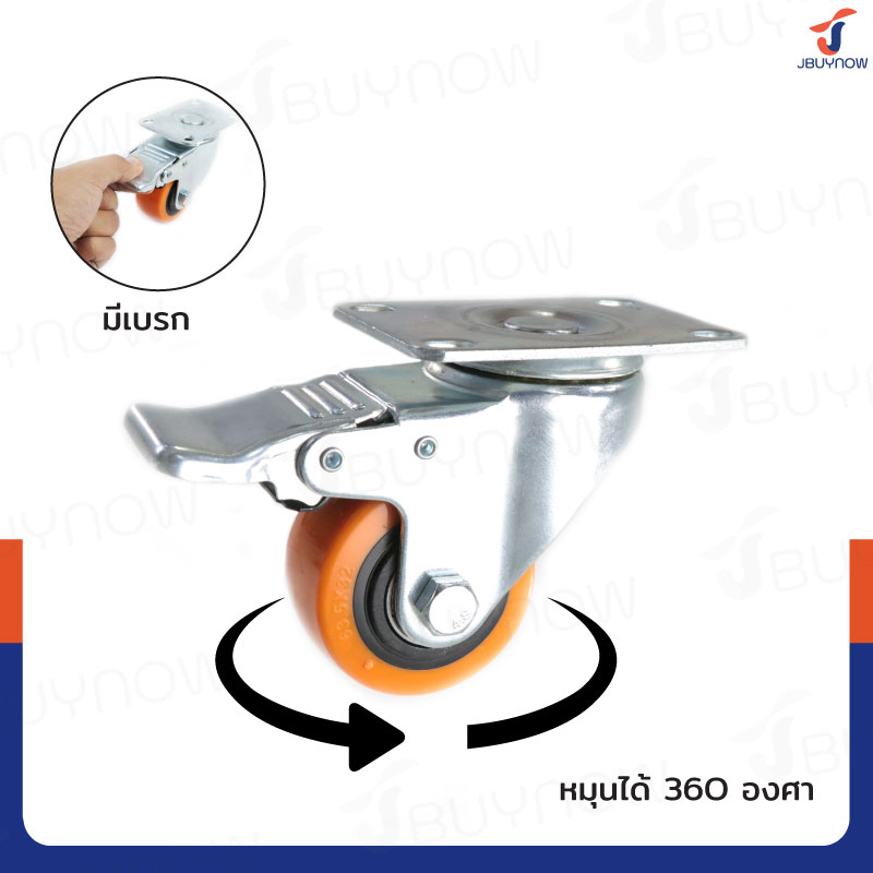 ล้อ 2.5 แป้นเป็น มีเบรก PVC/PU สีส้ม JBUYNOW JF-1446063