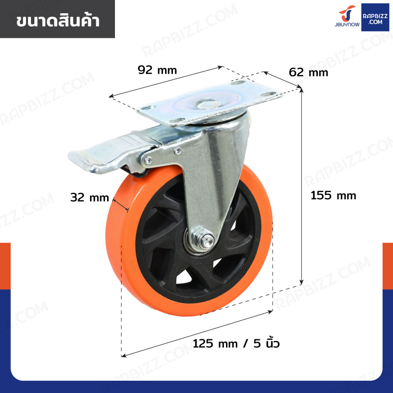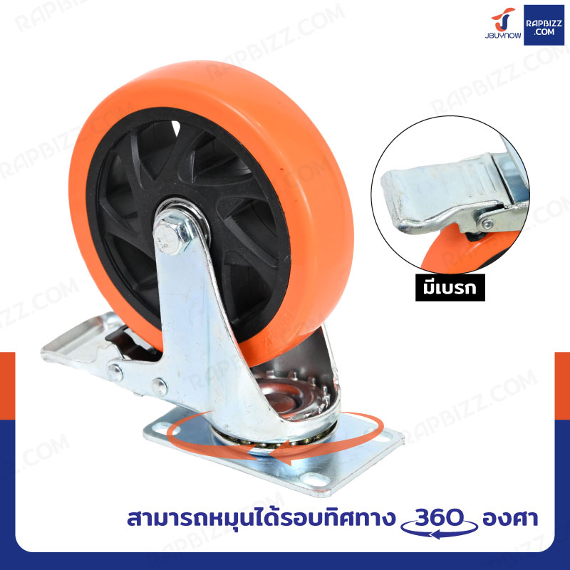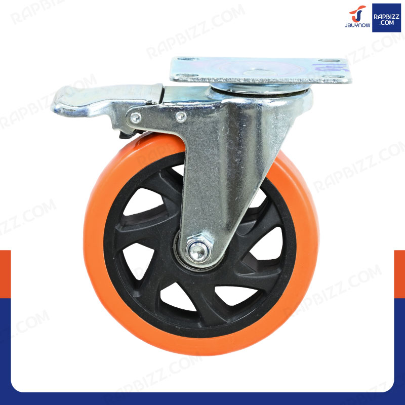 ล้อ 5 แป้นเป็น มีเบรก PVC/PU สีส้ม JBUYNOW JF-1449125