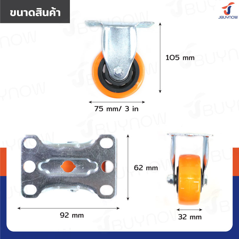 ล้อ 3 แป้นตาย PVC/PU สีส้ม JBUYNOW JF-1455075