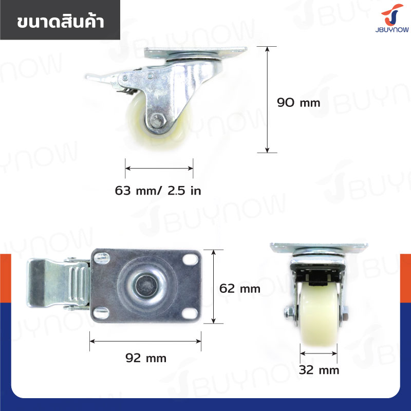 ล้อ 2.5 แป้นเป็น มีเบรก ไนล่อน สีขาว JBUYNOW JF-1470063