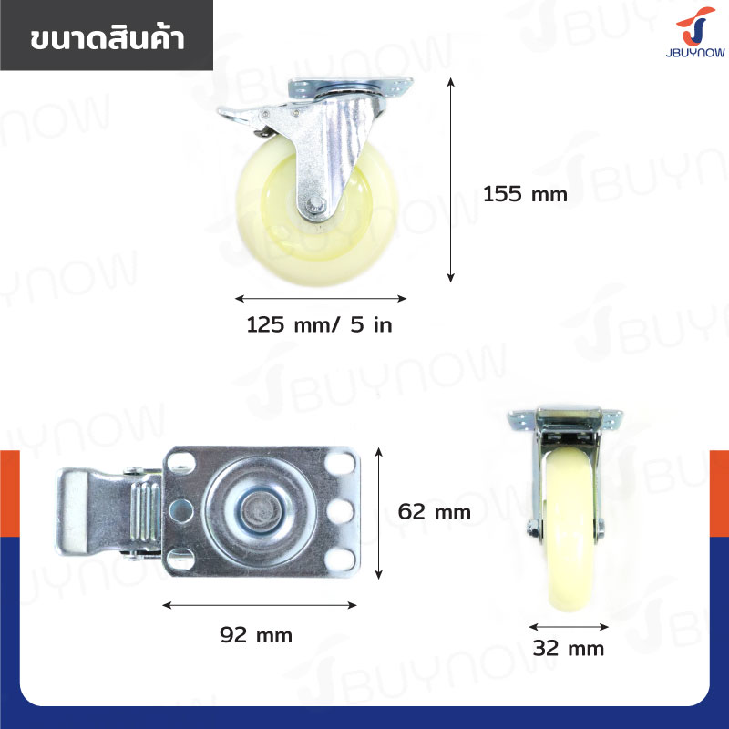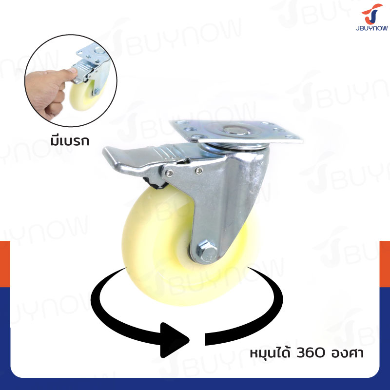 ล้อ 5 แป้นเป็น มีเบรก ไนล่อน สีขาว JBUYNOW JF-1473125
